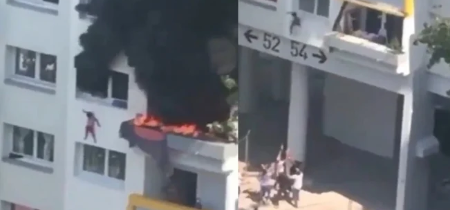 Two children, aged 10 and 3, jumped 9 meters from a burning building in Grenoble, France. 2 of the 6 adults who caught them broke their arms. The children are safe. pic.twitter.com/pWanh72kUu