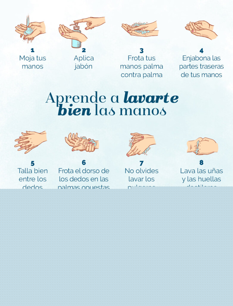 - Recuerda que el lavado de manos tiene que durar al menos 20 segundos.