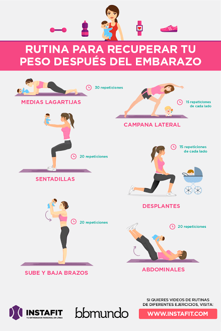 Si quieres más detalles en cómo hacer cada ejercicio entra aquí y ve a detalle la rutina o checa la rutina stroller fitness que puedes hacer con la carriola.