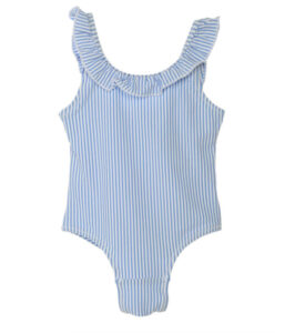 4- Si de plano te toca un calor súper intenso y quieres que tu bebé ande súper fresco, porque no fingir un rato que están en la plata. Este traje de baño de Mon Caramel es de algodón, tiene un diseño precioso, y es muy cómodo. ¿Qué más puedes pedir?